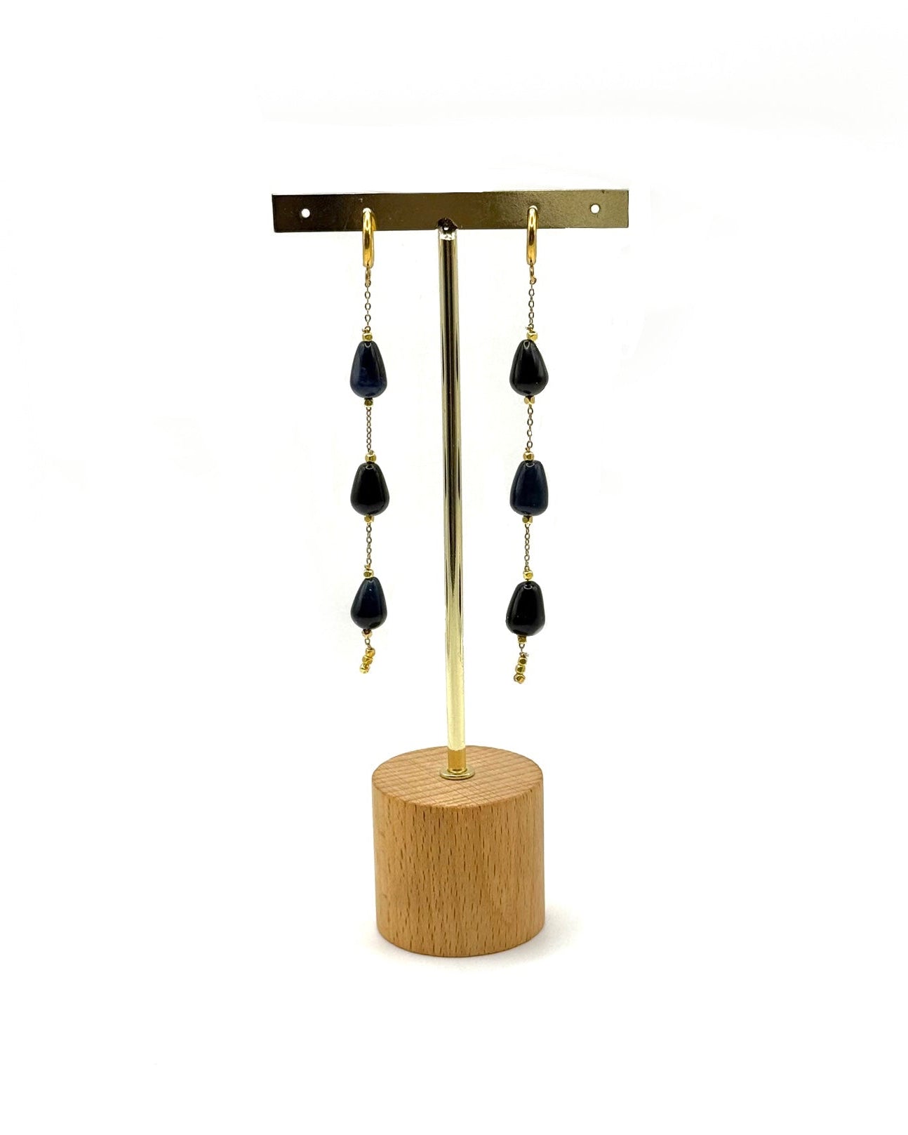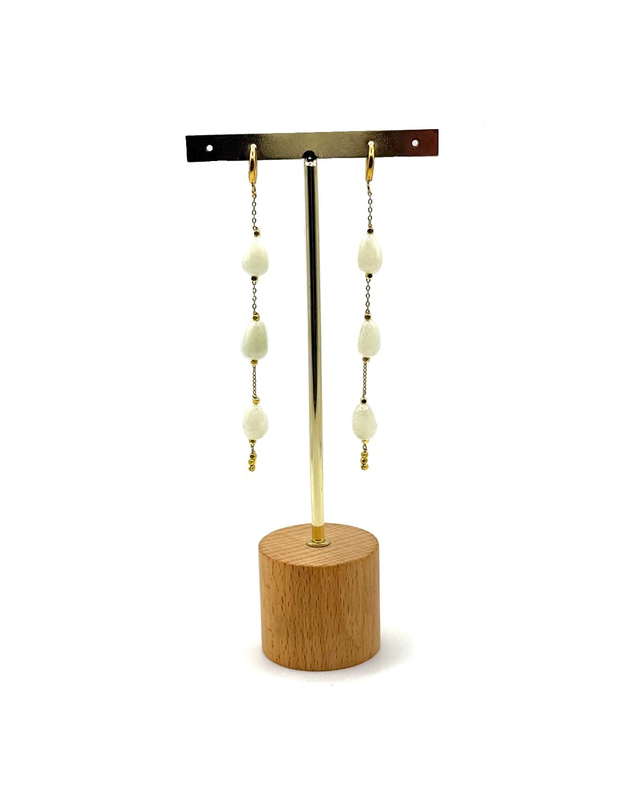 Pendientes hechos a mano de forma artesanal en España con piezas de acero inoxidable y piedras.