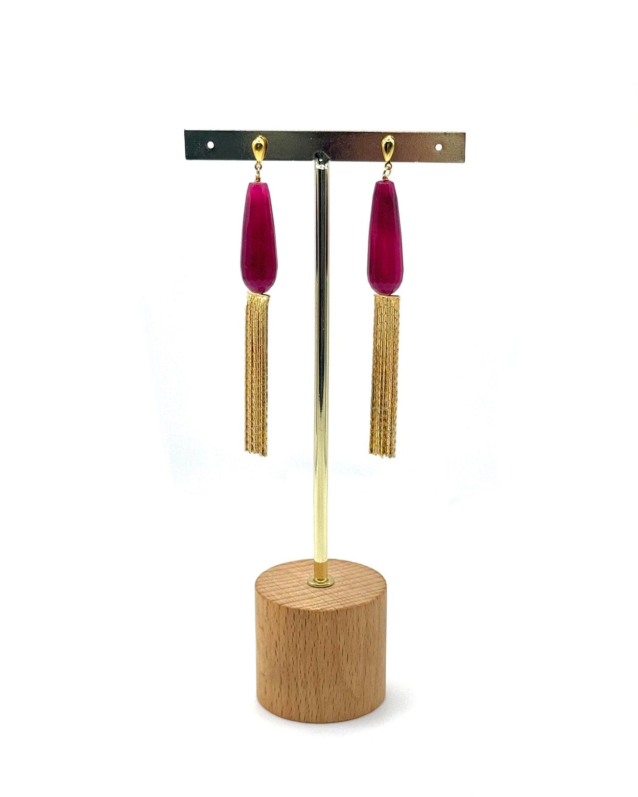 Pendientes hechos a mano de forma artesanal en España con piezas de acero inoxidable y piedras.